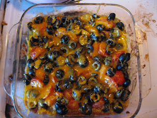 And just now I made 5-Layer Dip w/ refried beans, guacamole, tomatoes, black olives, and cheddar cheese